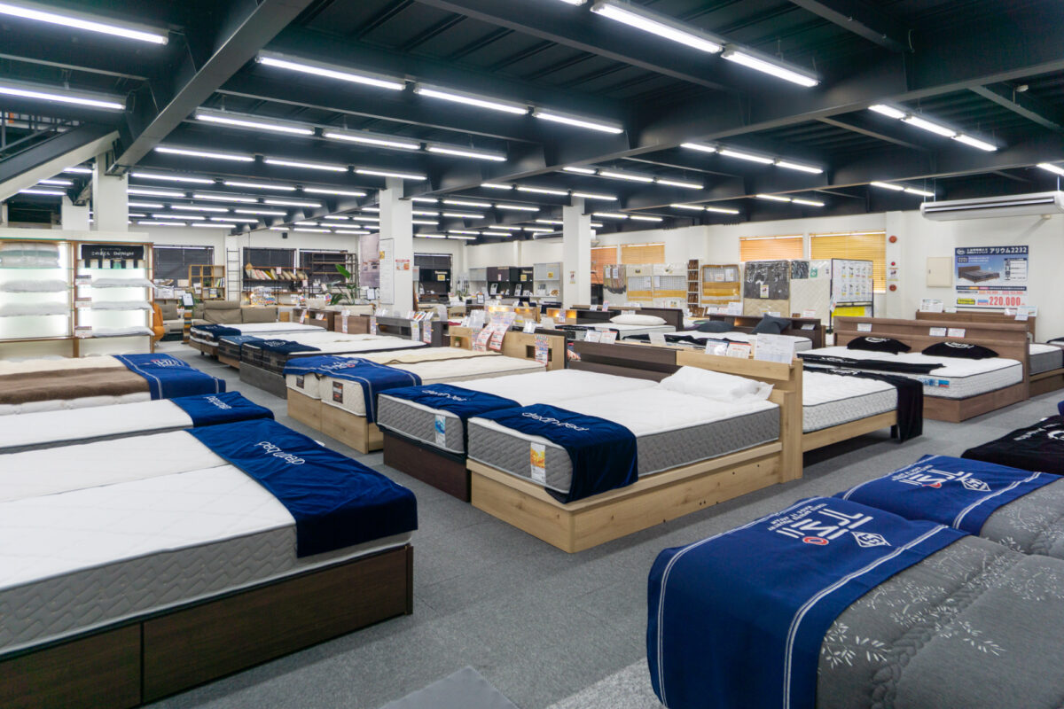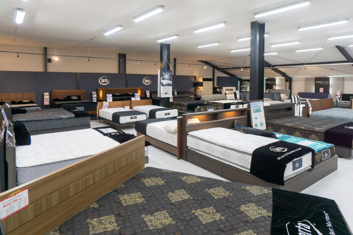 新井家具ベッド館さんはベッド・寝具の専門店で、ベッドの品揃えがおったまげ〜なお店です。
