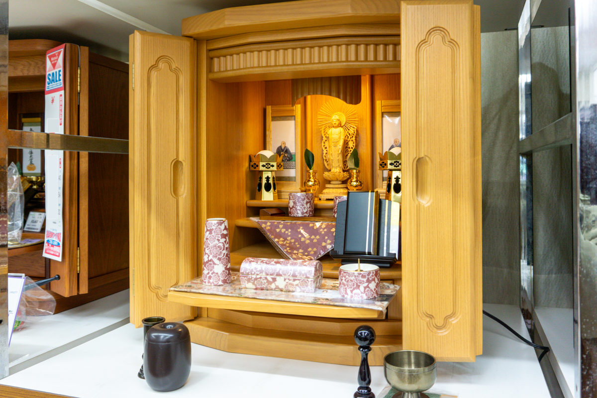 店内には多種多様な仏壇が。