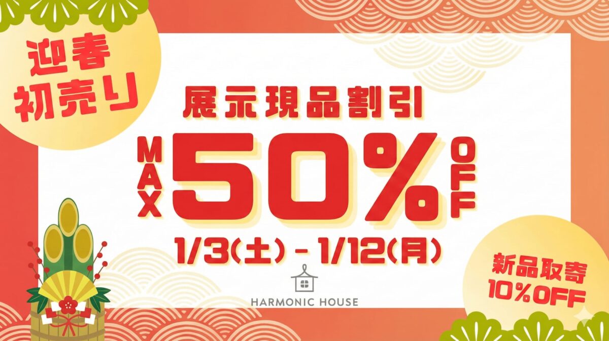 【1/3〜1/12】初売り 展示現品MAX50%OFF、新品取り寄せも10%OFF【ハーモニックハウス】