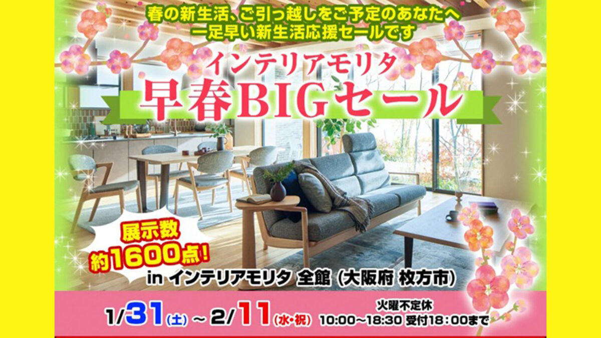 次回開催決定「枚方家具団地13店舗 新生活応援!先駆け半額フェア」2/8〜11,2/22〜24